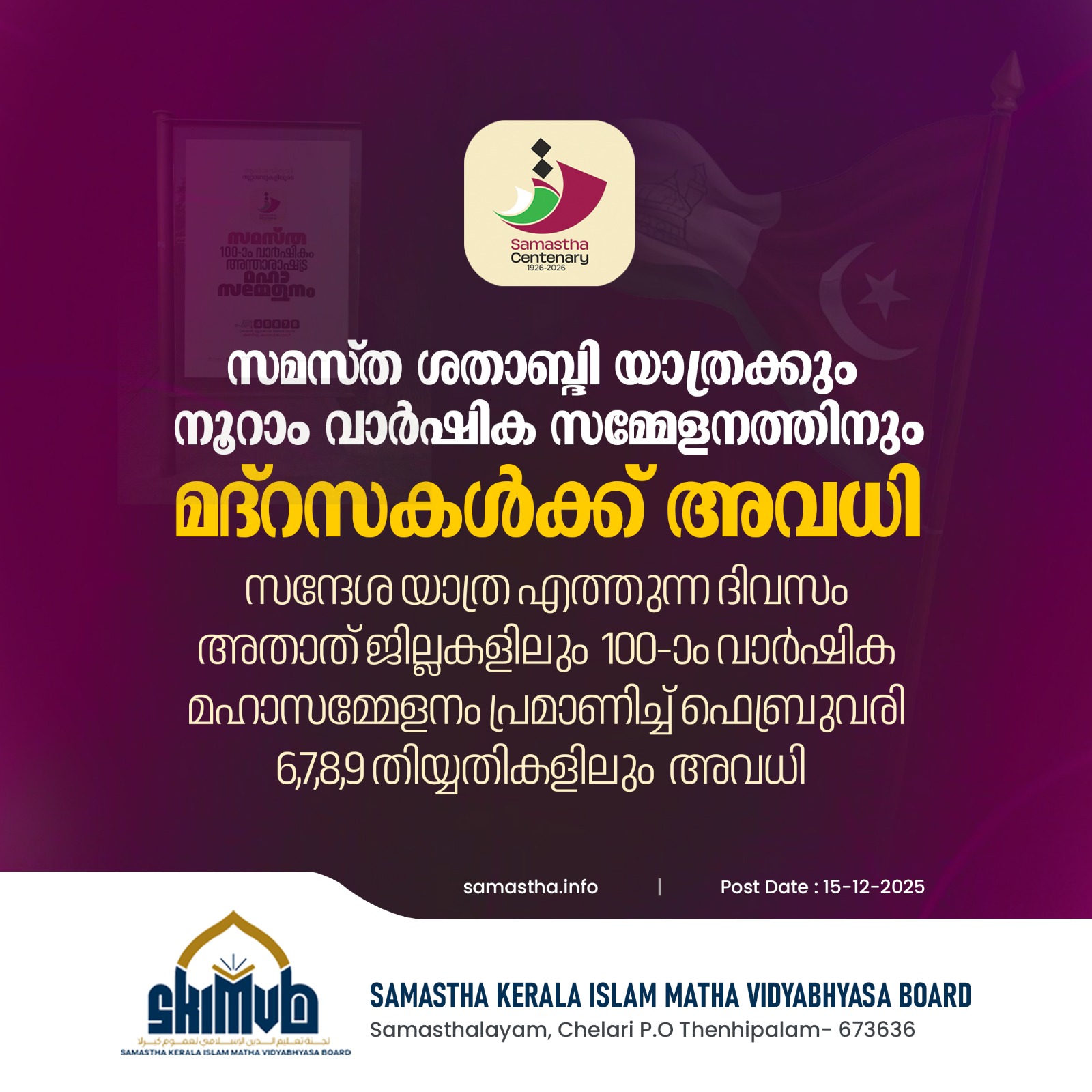 സമസ്ത നൂറാം വാർഷികം പോസ്റ്റർ ഡേ 26 ന്